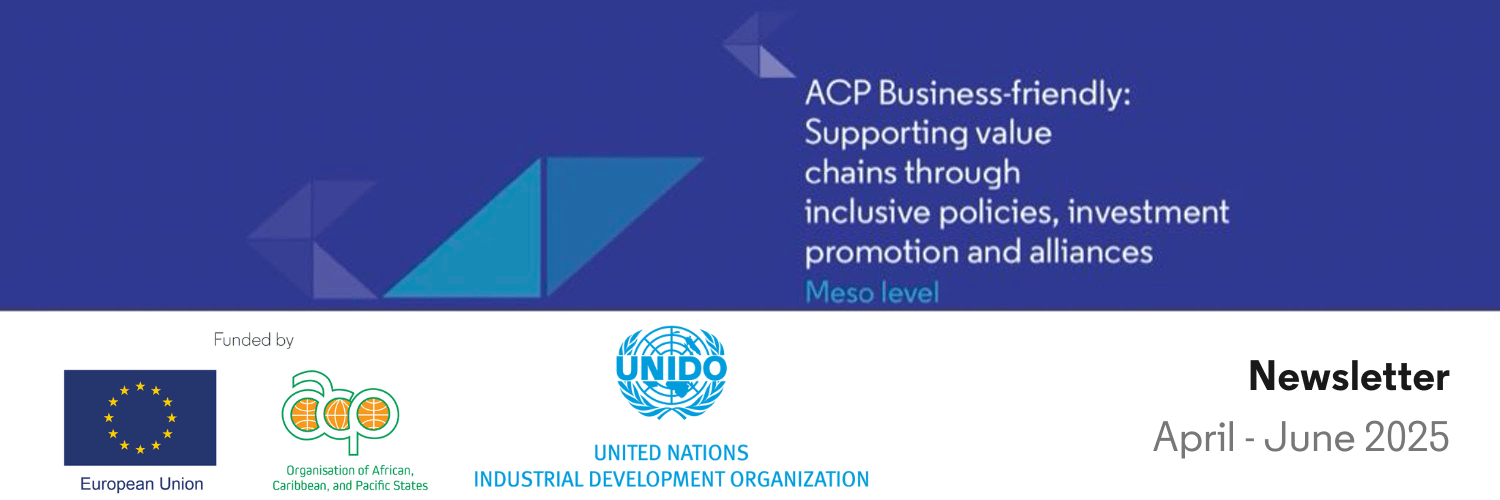 Subscribe for updates about the UNIDO-led meso-level component of the ACP Business-Friendly Programme, funded by the European Union & the Organization of African, Caribbean, and Pacific States (OACPS).